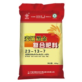紅四方麥灞黑金含腐植酸專用復合肥料43%(23-13-7),產品含有腐植酸,有效提高作物產量和品質,有改善土壤性狀作用。