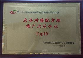 “農(nóng)企對(duì)接配方肥推廣示范企業(yè)Top10”